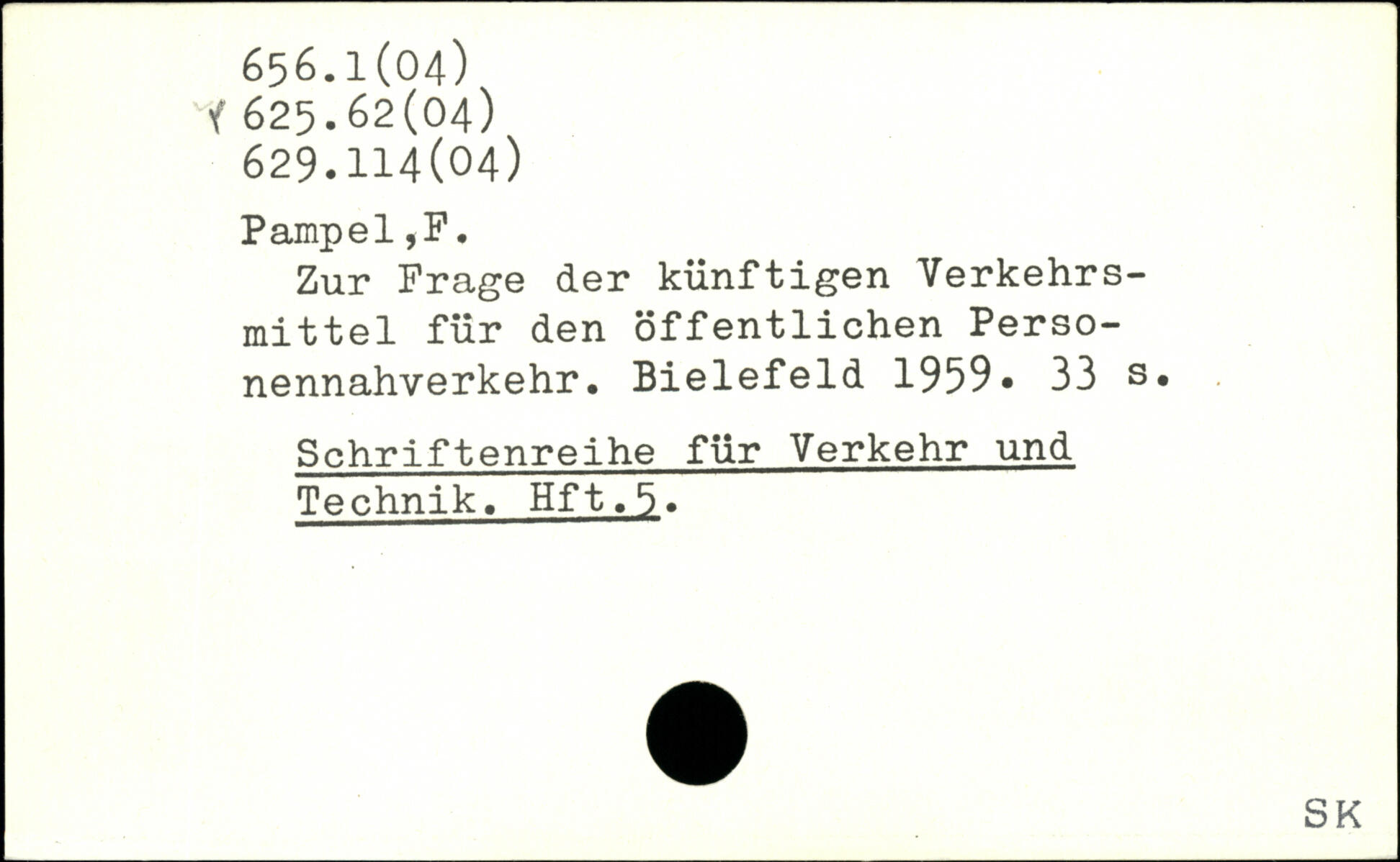 Zur Frage der künftigen Verkehrsmittel für den öffentlichen Personennahverkehr. Bielefeld 1959