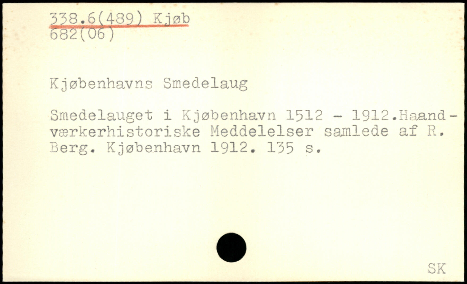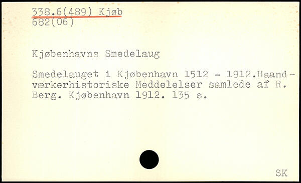 Kjøbenhavns Smedelaug Smedelauget i Kjøbenhavn 1512 - 1912.Haand-værkerhistoriske Meddelelser samlede af R. Berg. Kjøbenhavn 1912.