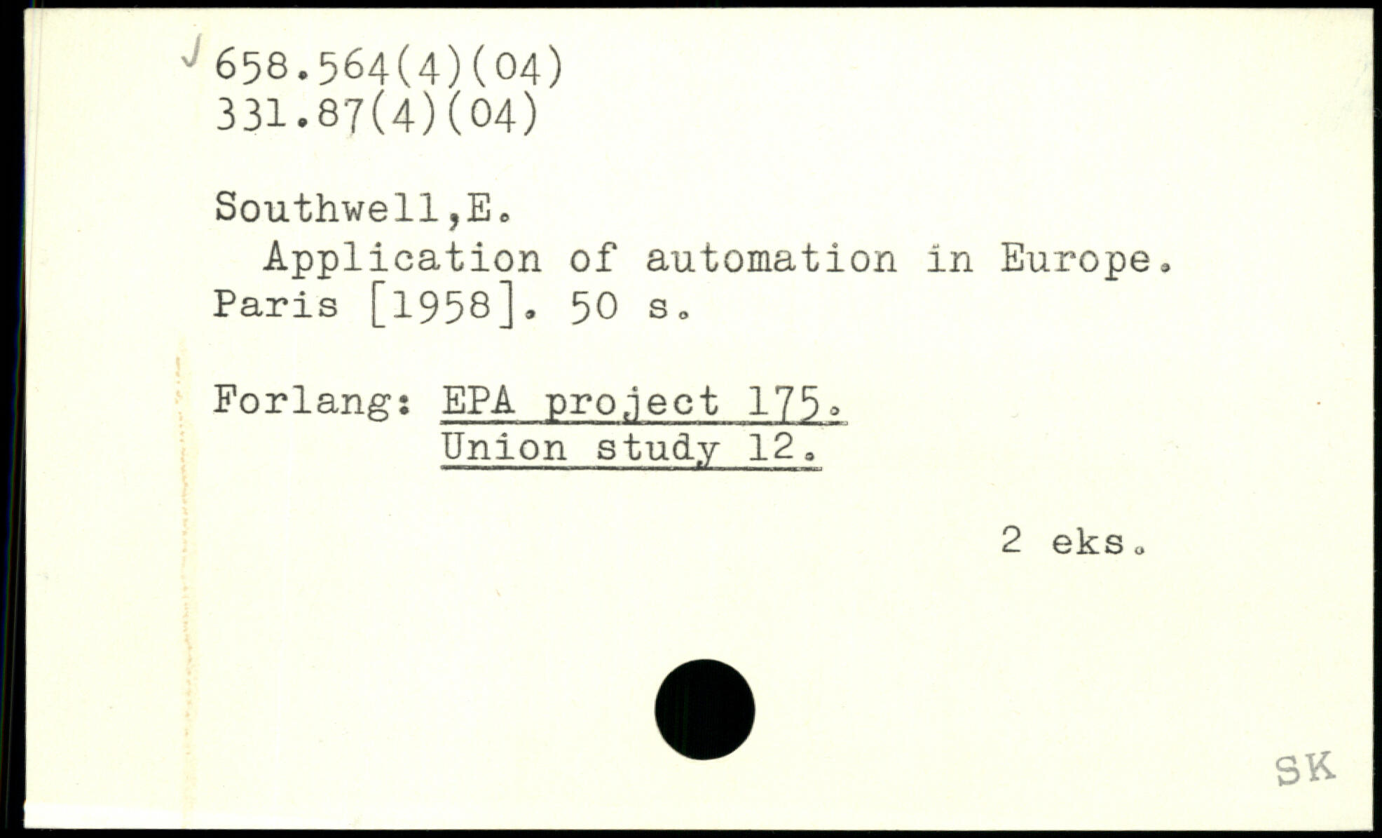 Southwell,Ee Application of automation in Europe