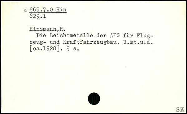 Die Leiohtmetalle der AEG für Flugzeug- und Kraftfahrzeugbau. U.st.u.ä.