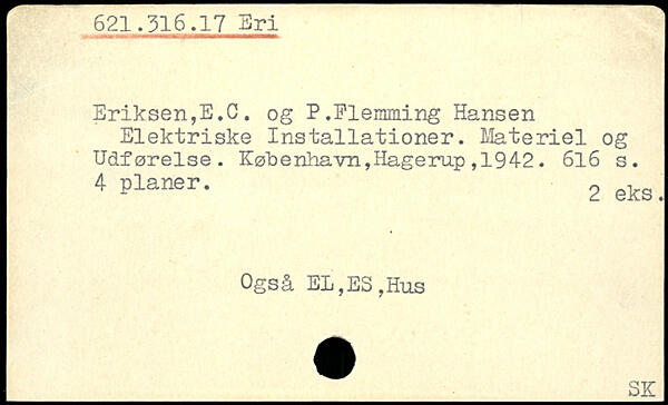 Eriksen,E.G. og P.Flemming Hansen Elektriske Installationer. Materiel og Udførelse.