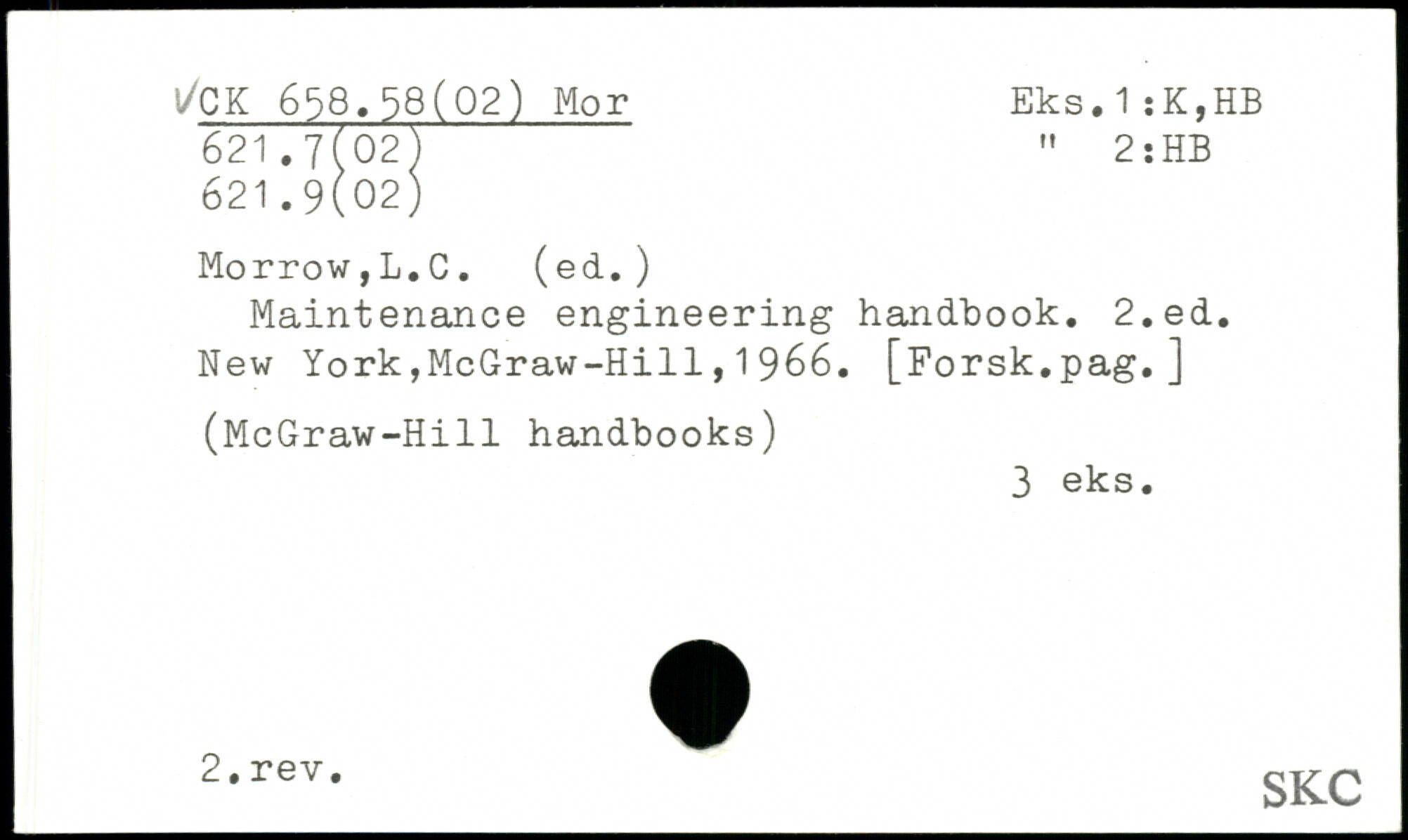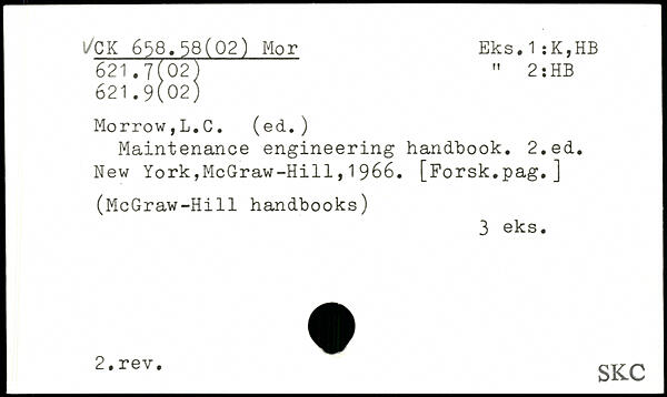 SFTTtTozT " 2: HB 621.9(02) Morrow,L.C. (ed.) Maintenance engineering handbook.