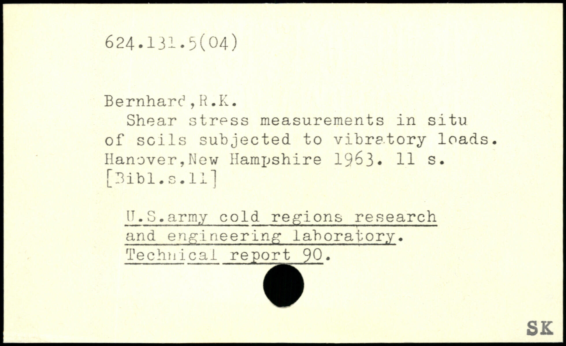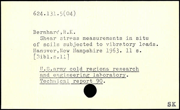 Shear stress measurements in situ of soils subjected to vibratory loads. Hanover,New Hampshire 1963