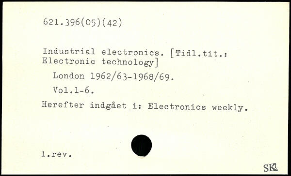 Industrial electronics. [Tidl.tit.î Electronic technology]