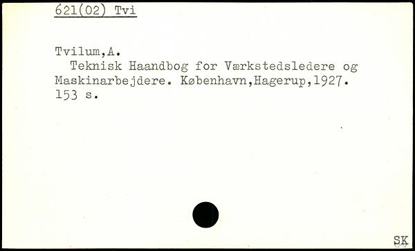 Teknisk Haandbog for Værkstedsledere og Maskinarbejdere.
