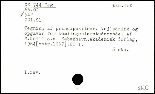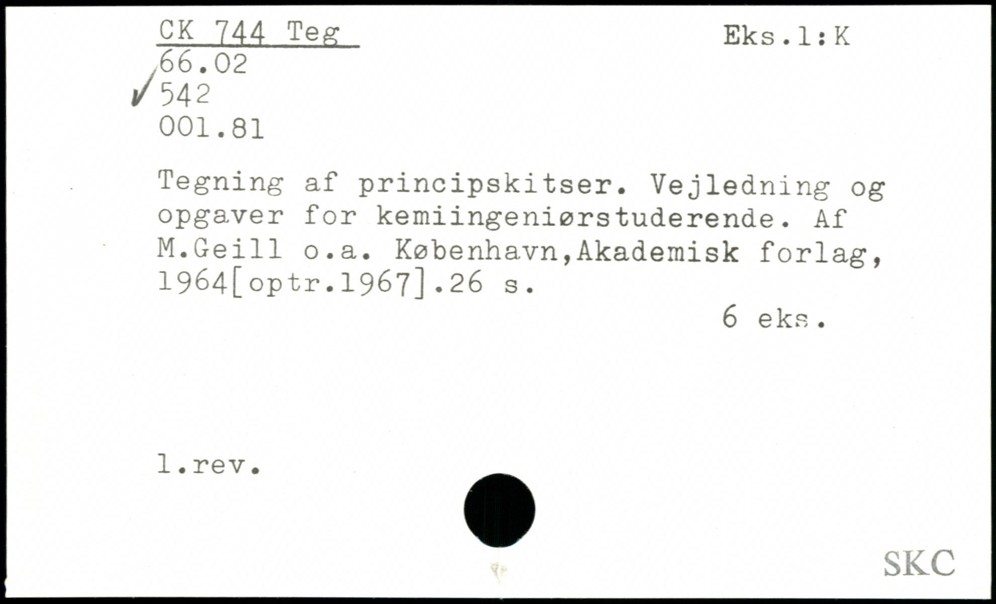 Tegning af principskitser. Vejledning og opgaver for kemiingeniørstuderende. Af M.Geill o.a.