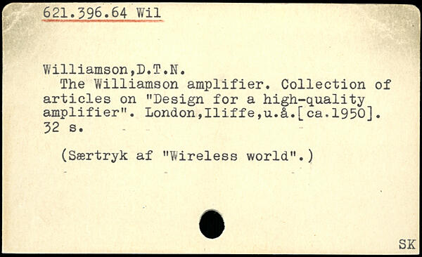 The W1111amson amplifier. Collection of articles on "Design for a high-quality amplifier". London,Iliffe,u.â.[ca.1950].