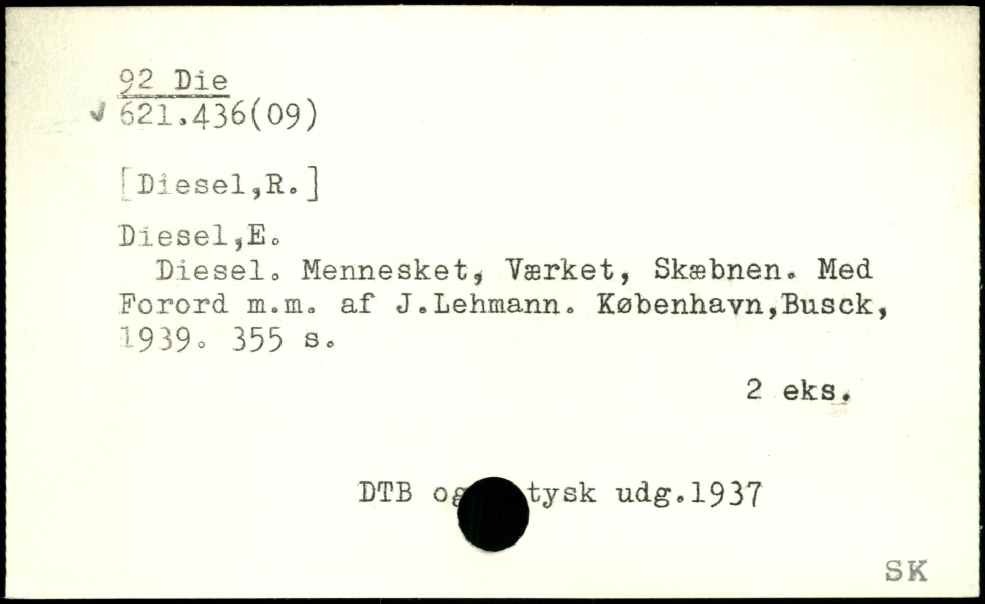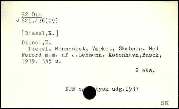 Diesel, Mennesket, Værket, Skæbnen. Med Forord m.m. af J.Lehmann.