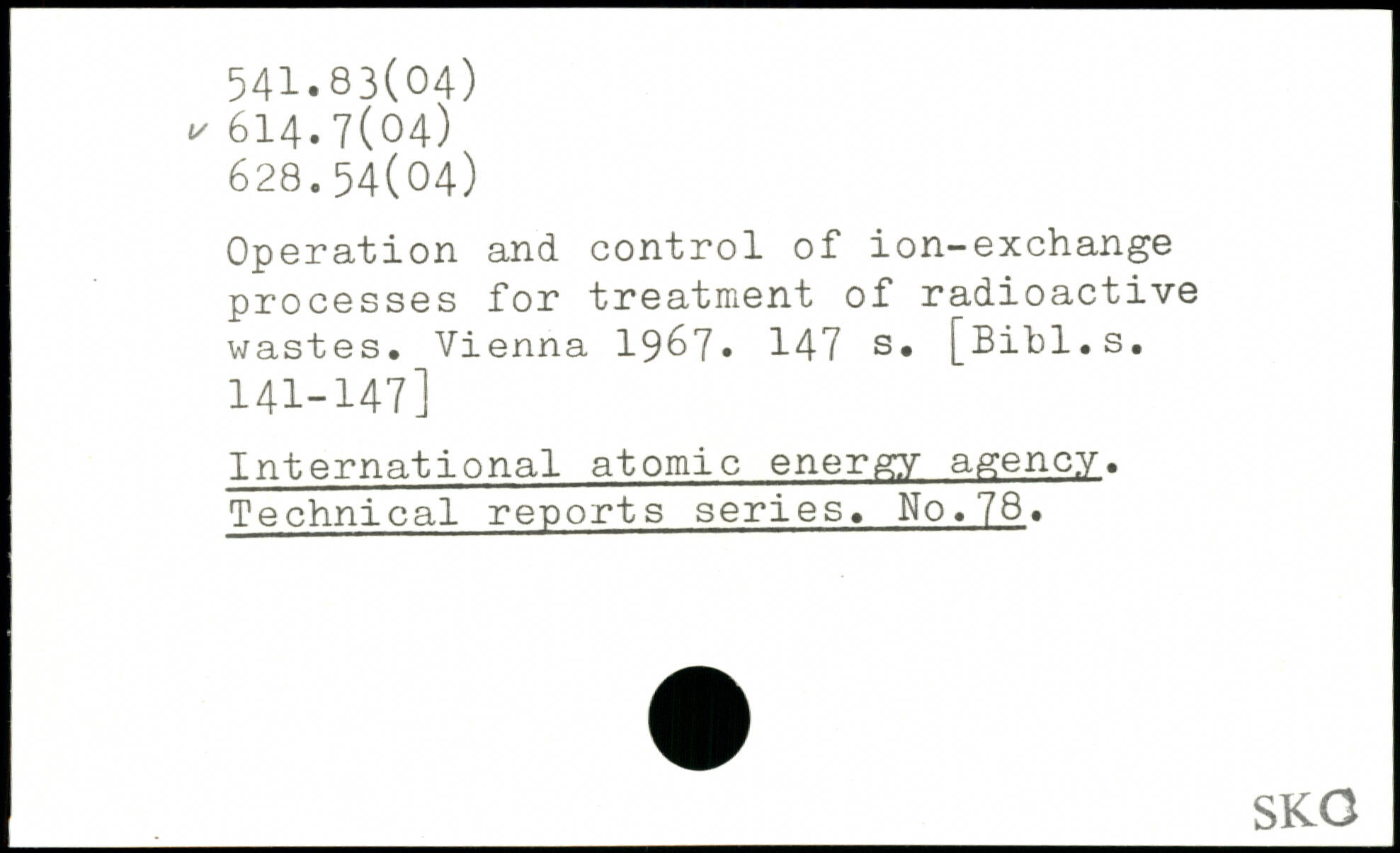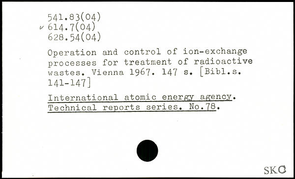 Operation and control of ion-exchange processes for treatment of radioactive wastes. Vienna 1967