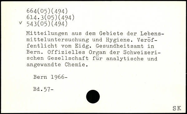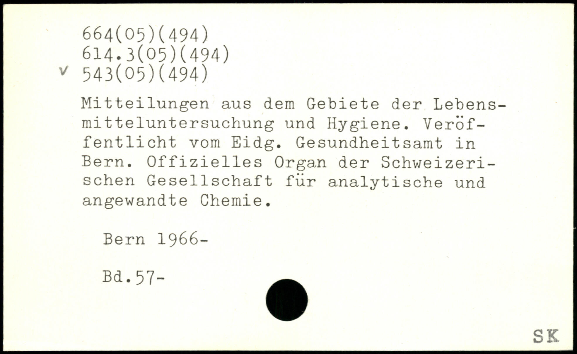 Mitteilungen aus dem Gebiete der Lebensmitteluntersuchung und Hygiene. Veröffentlicht vom Eidg. Gesundheitsamt in Bern. Offizielles Organ der Schweizerischen Gesellschaft für analytische und angewandte Chemie.