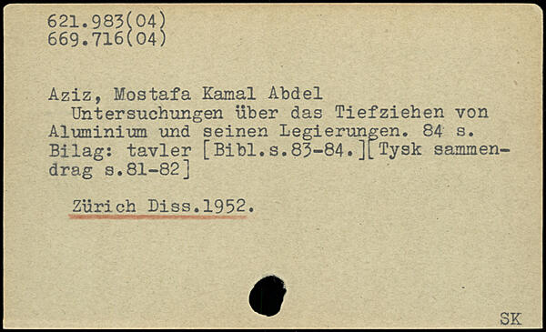Aziz, Mostafa Kamal Abdel Untersuchungen über das Tiefziehen von Aluminium und seinen Legierungen.