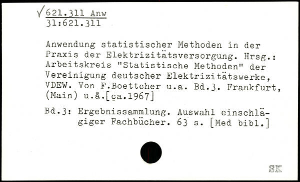 Anwendung statistischer Methoden in der Praxis der Elektrizitatsversorgung. Hrsg.: Arbeitskreis "Statistische Methoden" der Vereinigung deutscher Elektrizitätswerke, VDEW. Von F.Boettcher u.a.