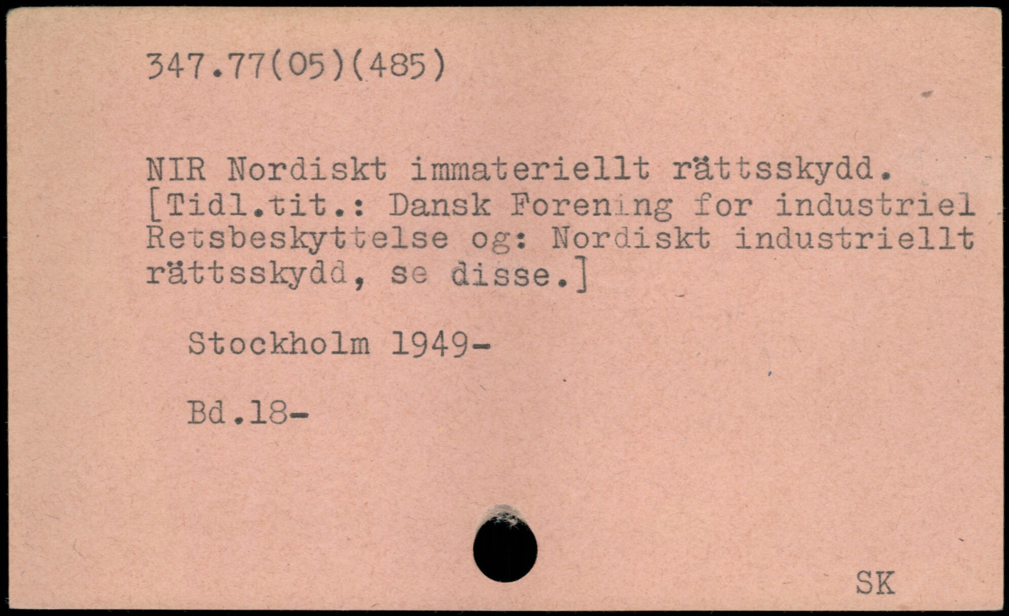 NIR Nordiskt immateriellt rättsskydd. [Tidl.tit.: Dansk Förening for industriel. Retsbeskyttelse og: Nordiskt industriellt rättsskydd, se disse.] Stockholm 194-9-