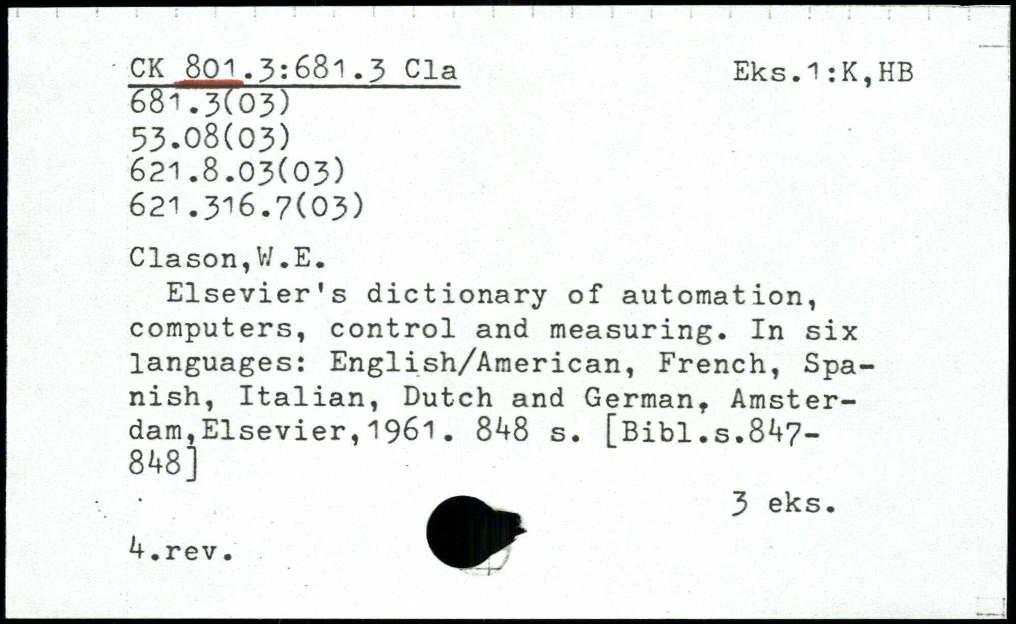 Elsevier's dictionary of automation, computers, control and measuring. In six languages: English/American, French, Spanish, Italian, Dutch and Germanf Amster- ] dam,Elsevier,1961.