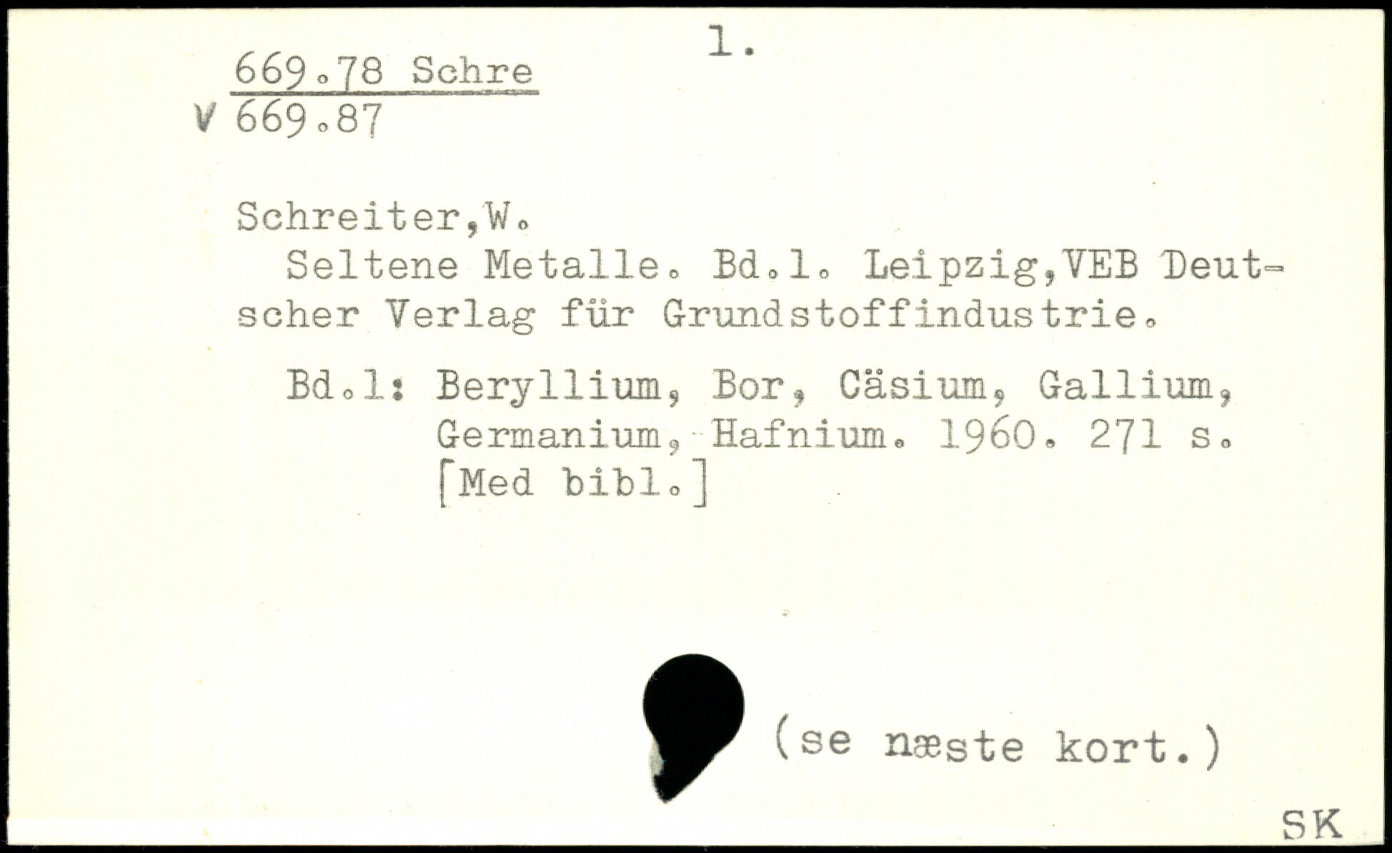 Seltene Metalle® Bd®!® Leipzig,VEB Deutscher Verlag für Grundstoffindustrie® Bdol: Beryllium, Bor, Cäsium, Gallium, Germanium, Hafnium® 1960® 271
