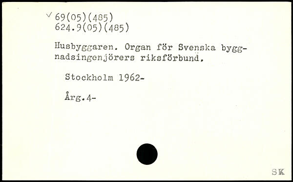 Husbyggaren. Organ för Svenska bygg-nadsingenjörers riksförbund.