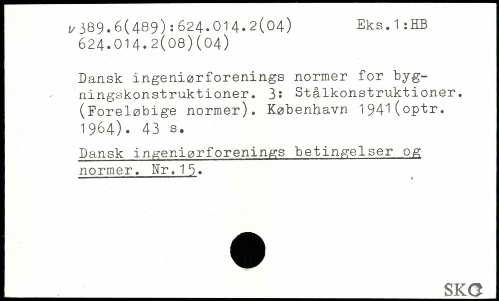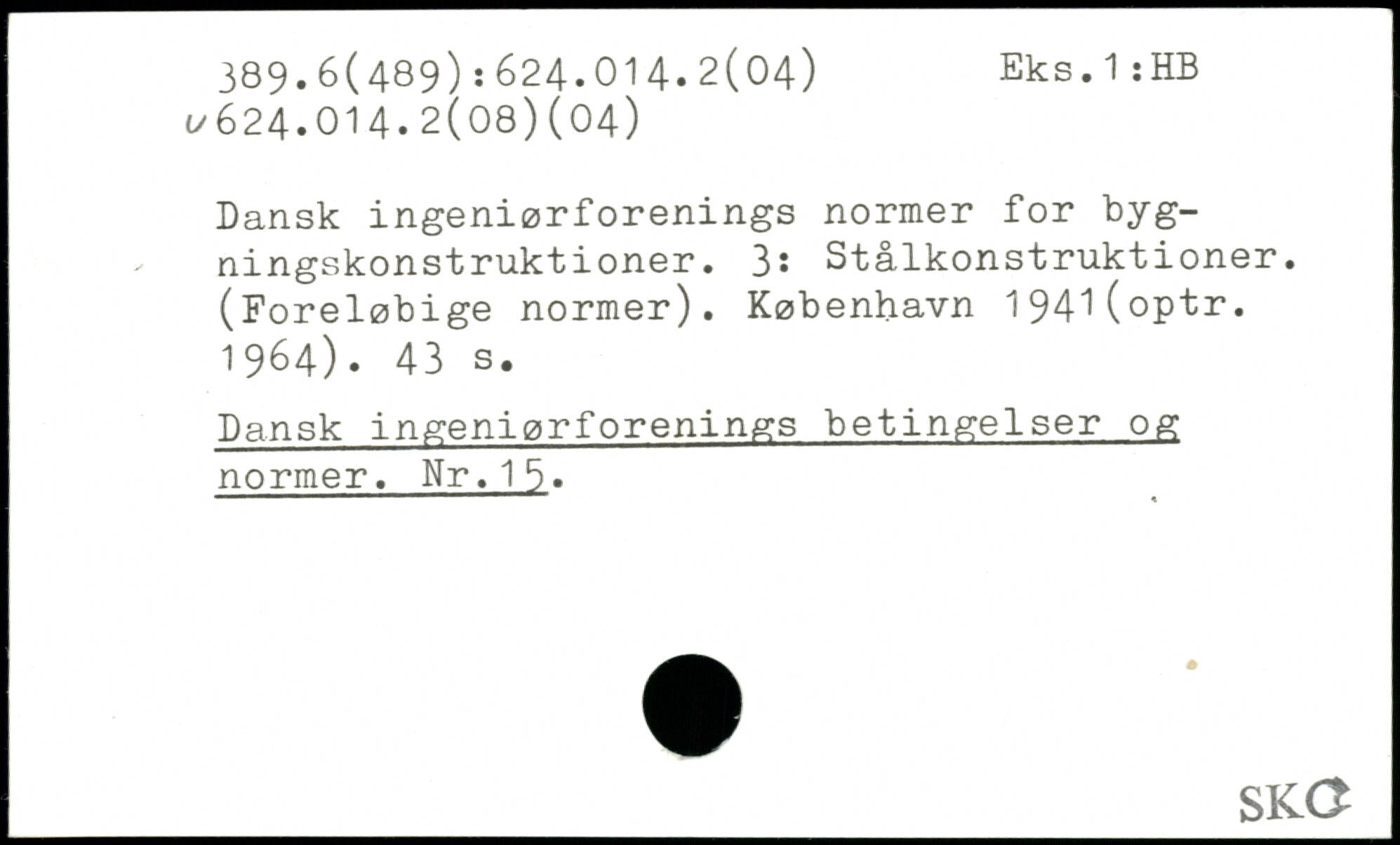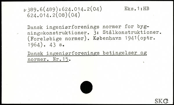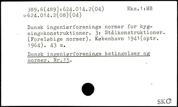 Dansk ingeniørforenings normer for bygningskonstruktioner. 3: Stålkonstruktioner. (Foreløbige normer). København 194^(optr. 1964).