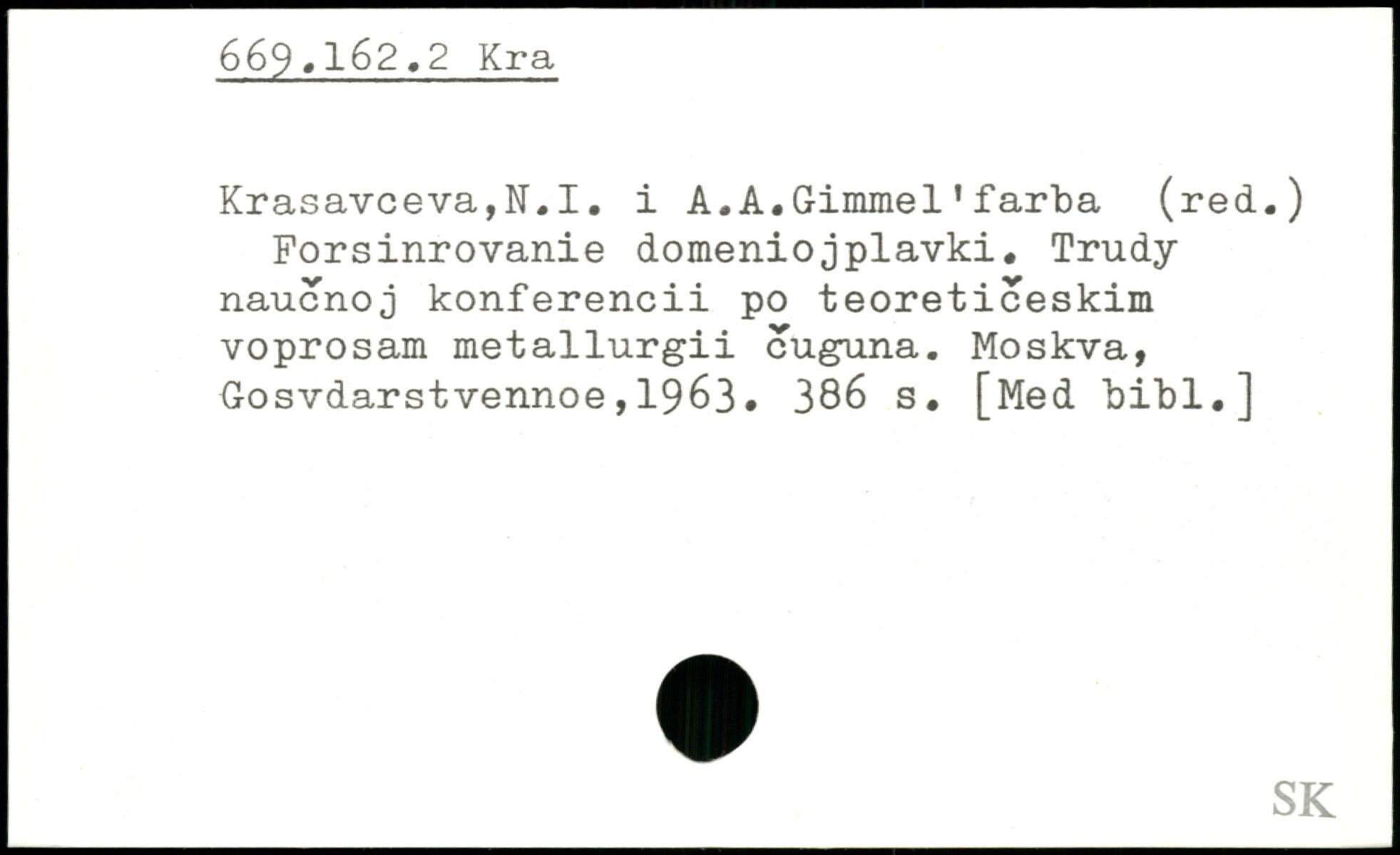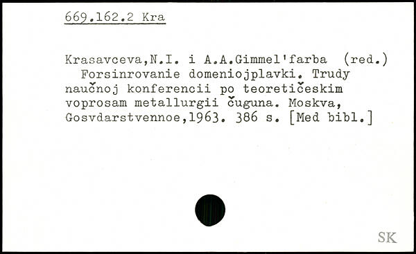 Krasavceva,N.I. i A.A.Gimrael1farba (red.) Forsinrovanie domeniojplavki. Trudy naucnoj konferencii po teoreticeskim voprosam metallurgii cuguna.