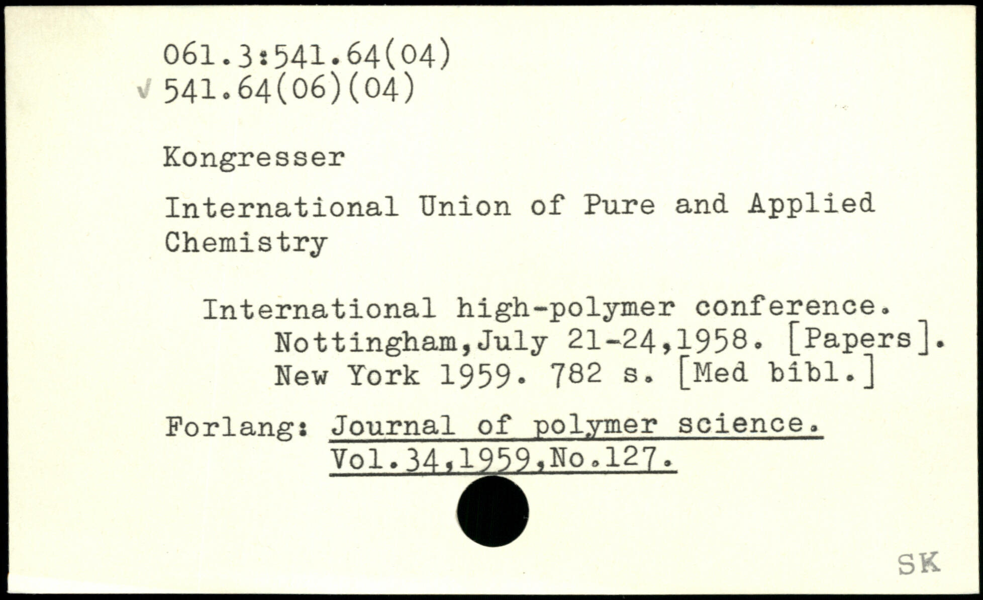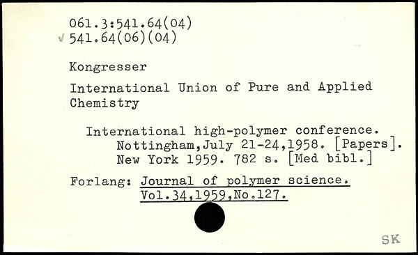 International Union of Pure and Applied Chemistry International high-polymer conference. Nottingham,July 21-24,1958. [Papers].