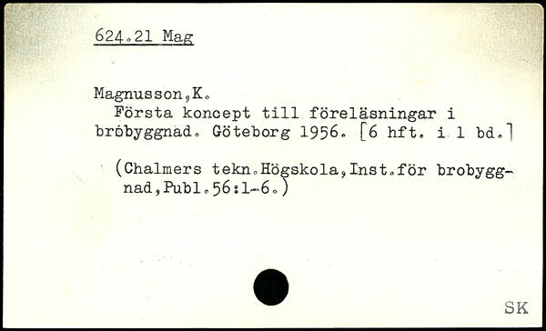 624. 21 Mag Magnusson9K, Första koncept till föreläsningar i brobyggnad,, Göteborg 1956. [6 hft. i l bd.l