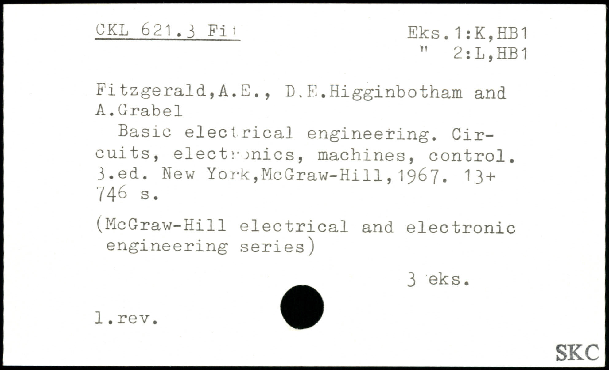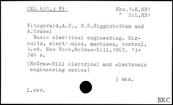 Fitzgerald,A.E., D. E. Higginbotham and. A.Grabel Basic electrical engineering. Circuits, elect :. jnics, machines, control, i.ed.