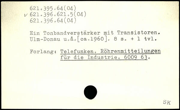 Ein Tonbandverstarker mit Transistoren. Ulm-Donau u.a,[ca,1960].