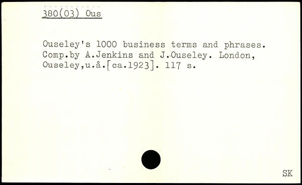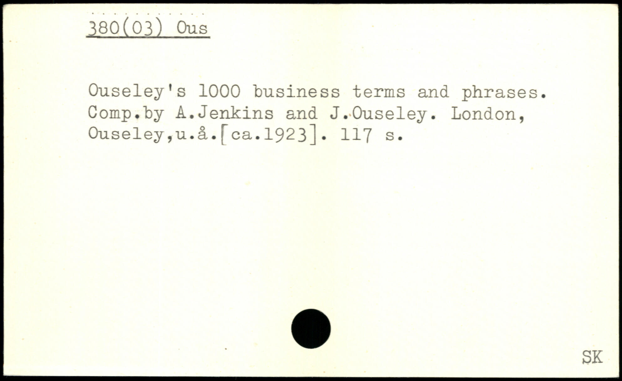 Ouseley's 1000 "business terms and phrases. Comp."by A.Jenkins and J.'Ouseley. London, Ouseley,u.a.[ca.1923].