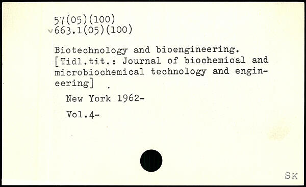 Biotechnology and bioengineering. [Tidl.tit.: Journal of biochemical and microbiochemical technology and engineering]