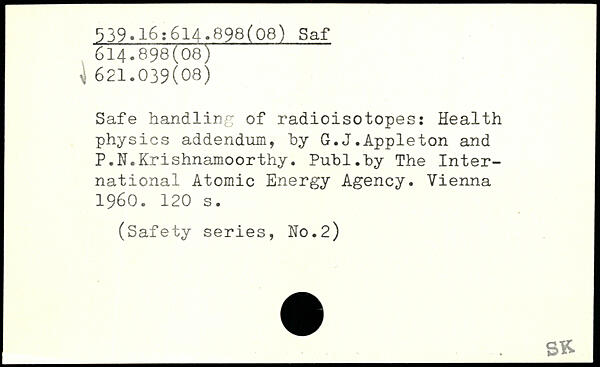Safe handling of radioisotopes: Health physics addendum, hy G.J.Appleton and P.N.Krishnamoorthy. Puhl.hy The International Atomic Energy Agency. Vienna 1960.