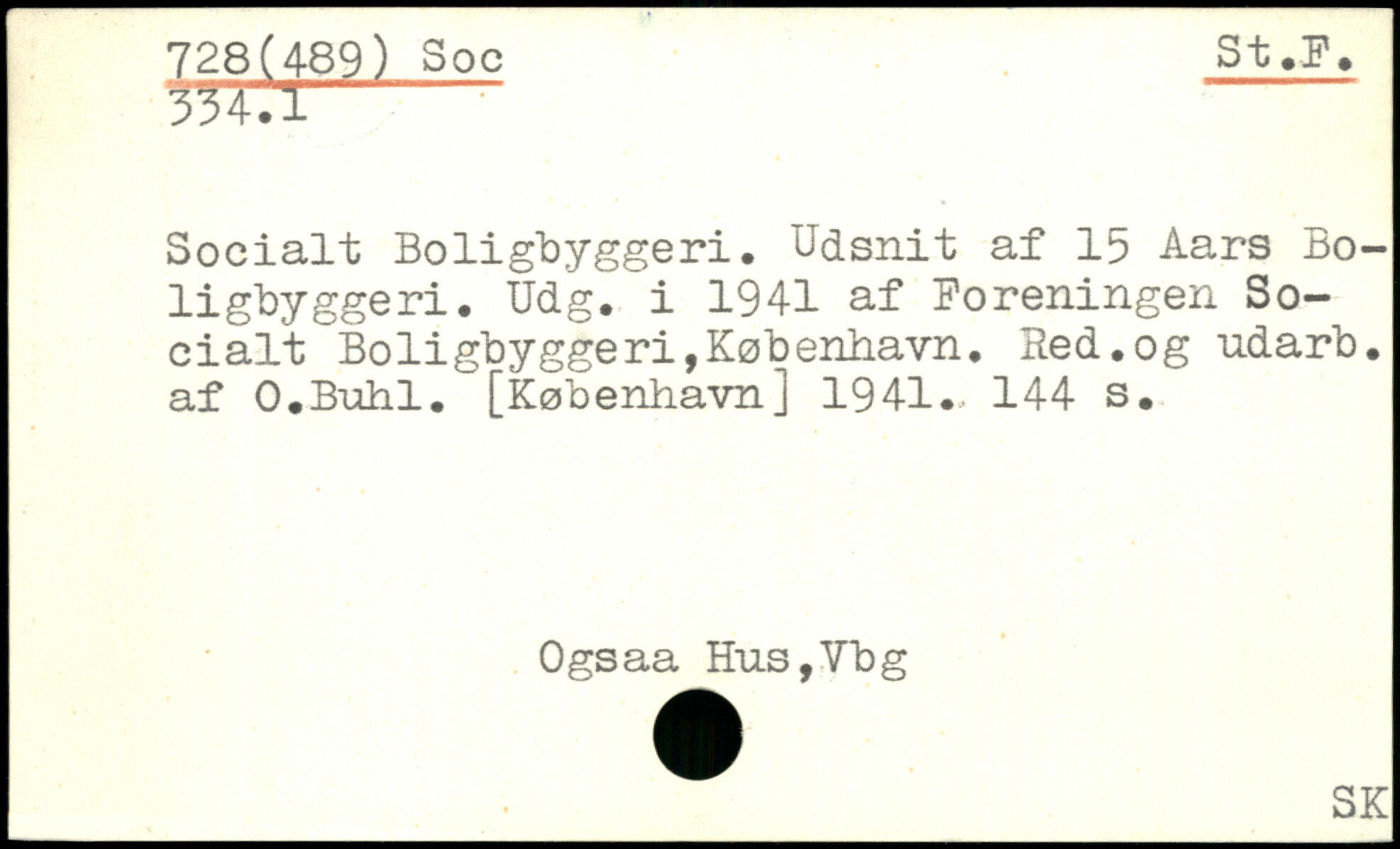 Socialt Boligbyggeri, Udsnit af 15 Aars Boligbyggeri. Udg. i 1941 af Foreningen Socialt Boligbyggeri,København. Red.og udarb. af O.Buhl.