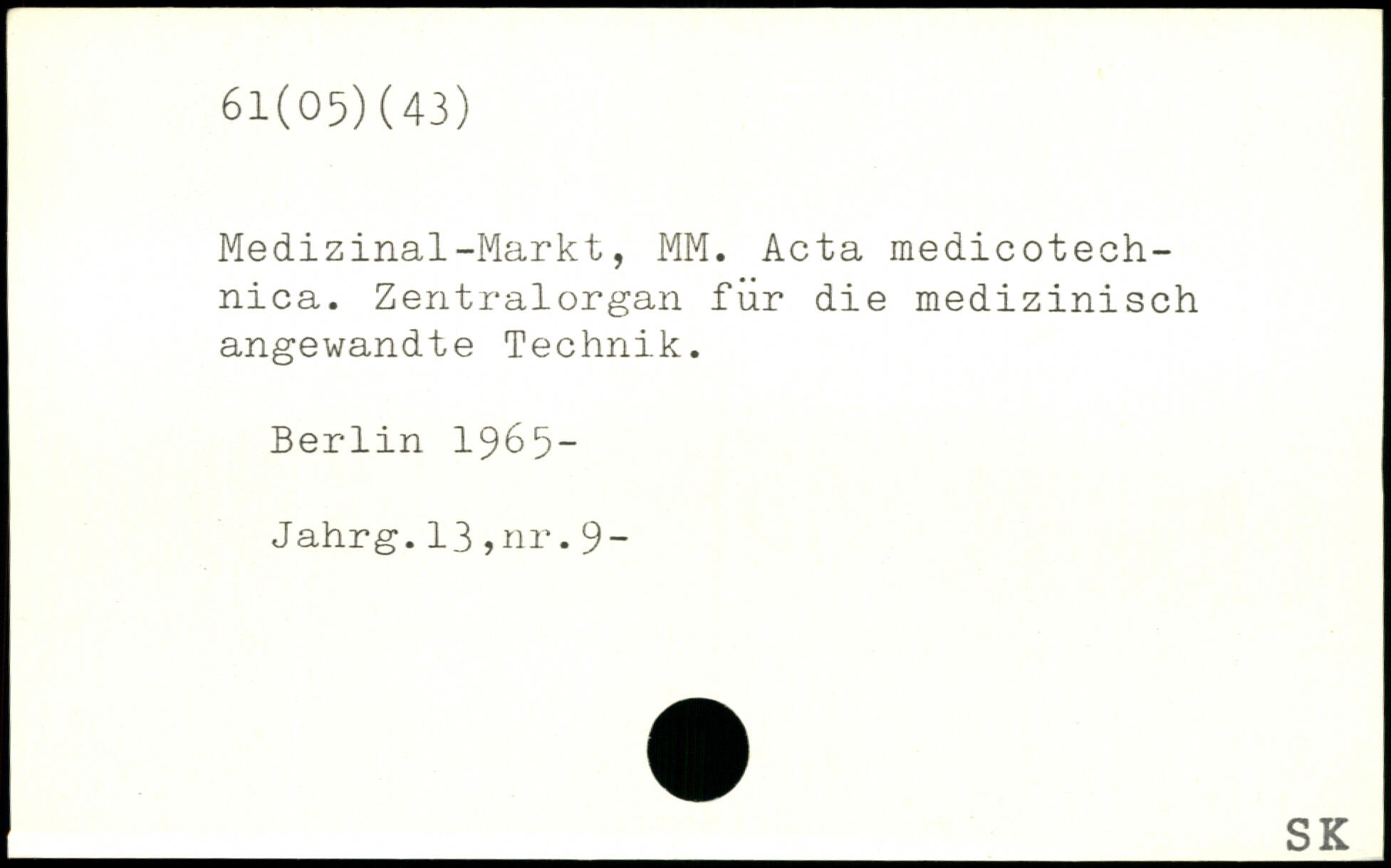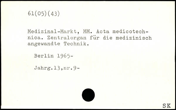 Medizinal-Markt, MM. Acta medicotech-nica. Zentralorgan für die medizinisch angewandte Technik.