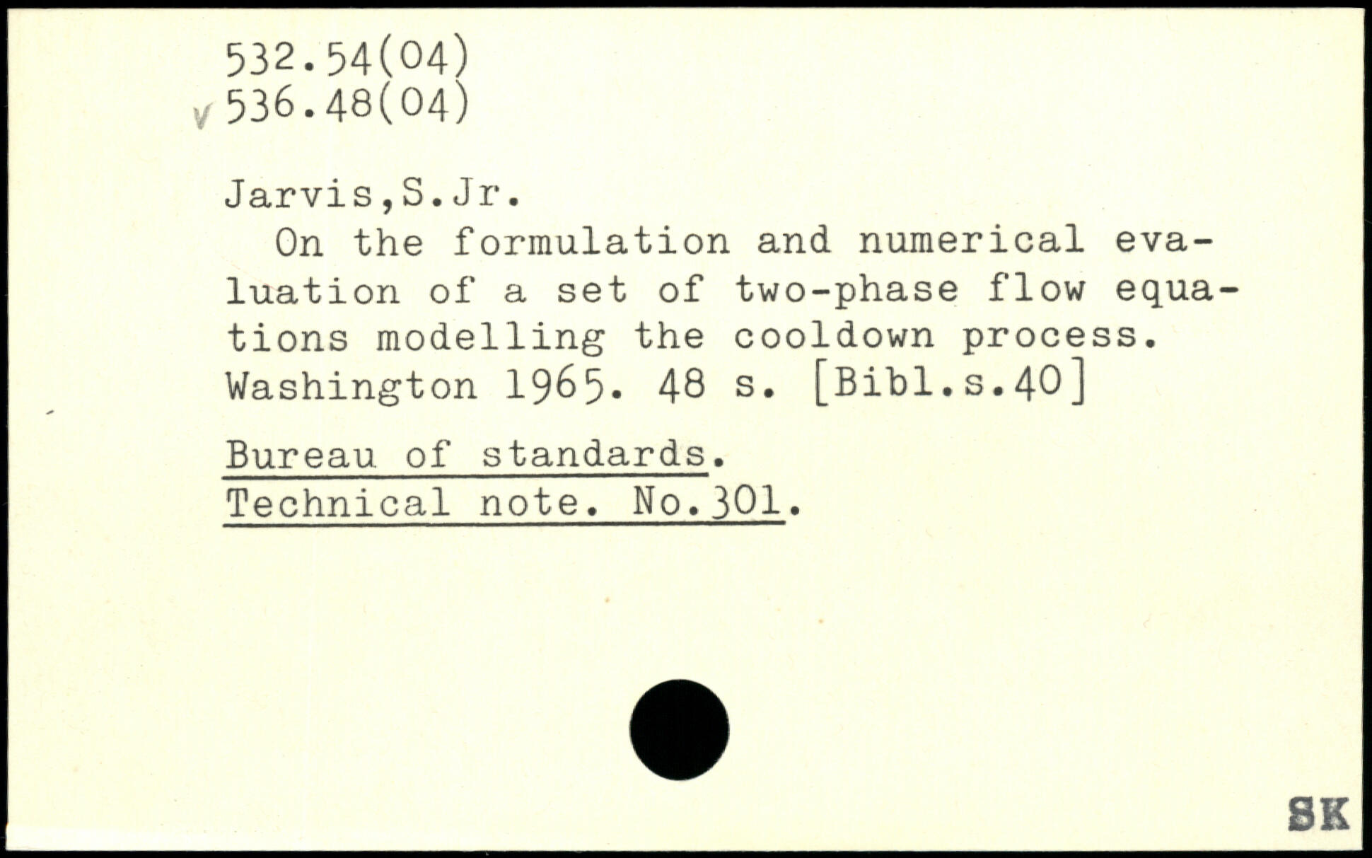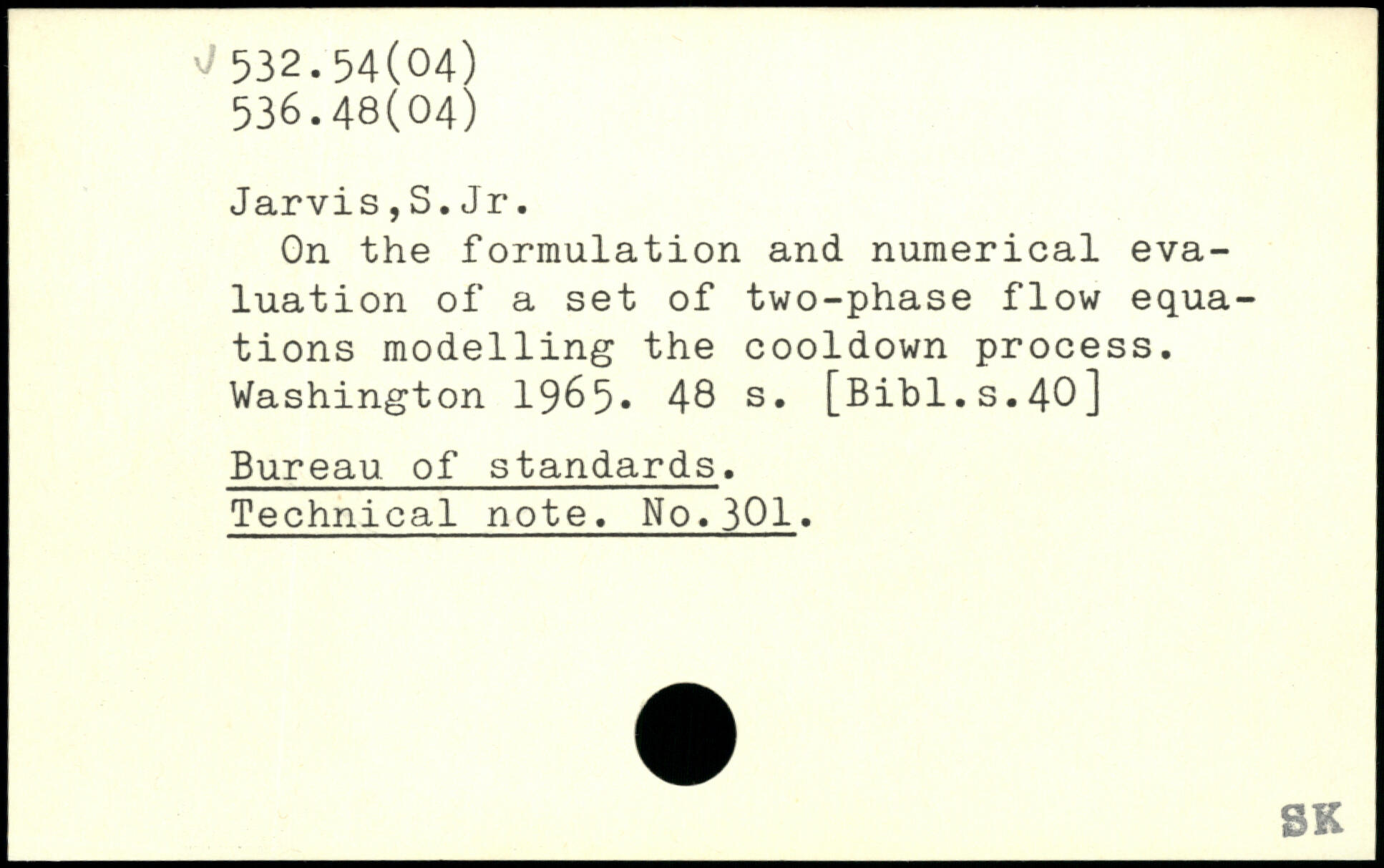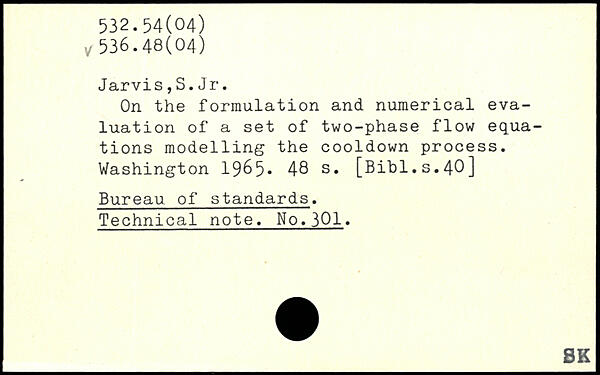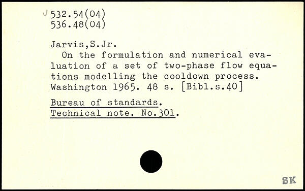 Jarvis,S.Jr. On the formulation and numerical evaluation of a set of two-phase flow equations modelling the cooldown process.