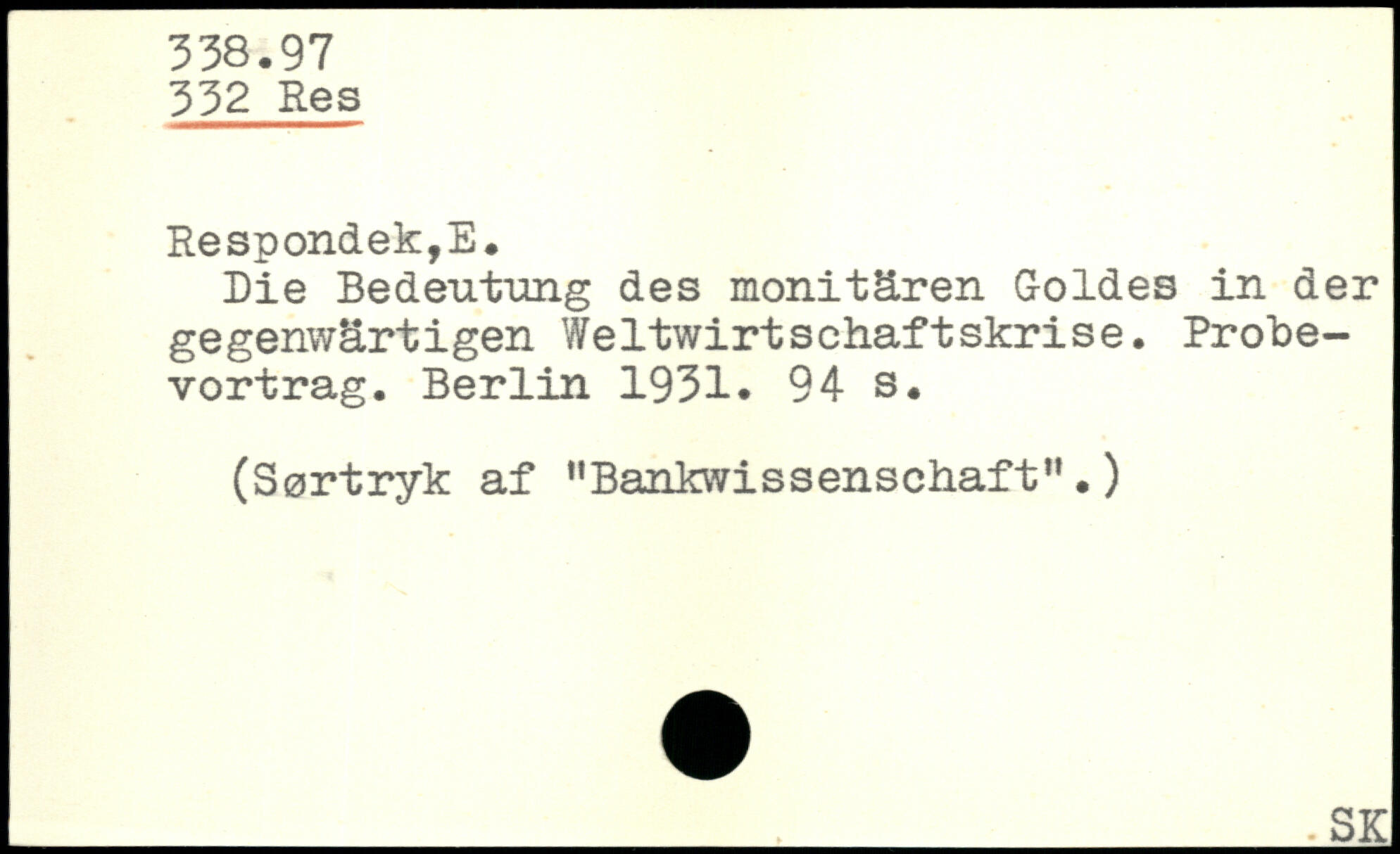 Die Bedeutung des monitären Goldes in der gegenwärtigen Weltwirtschaftskrise. Probevortrag.