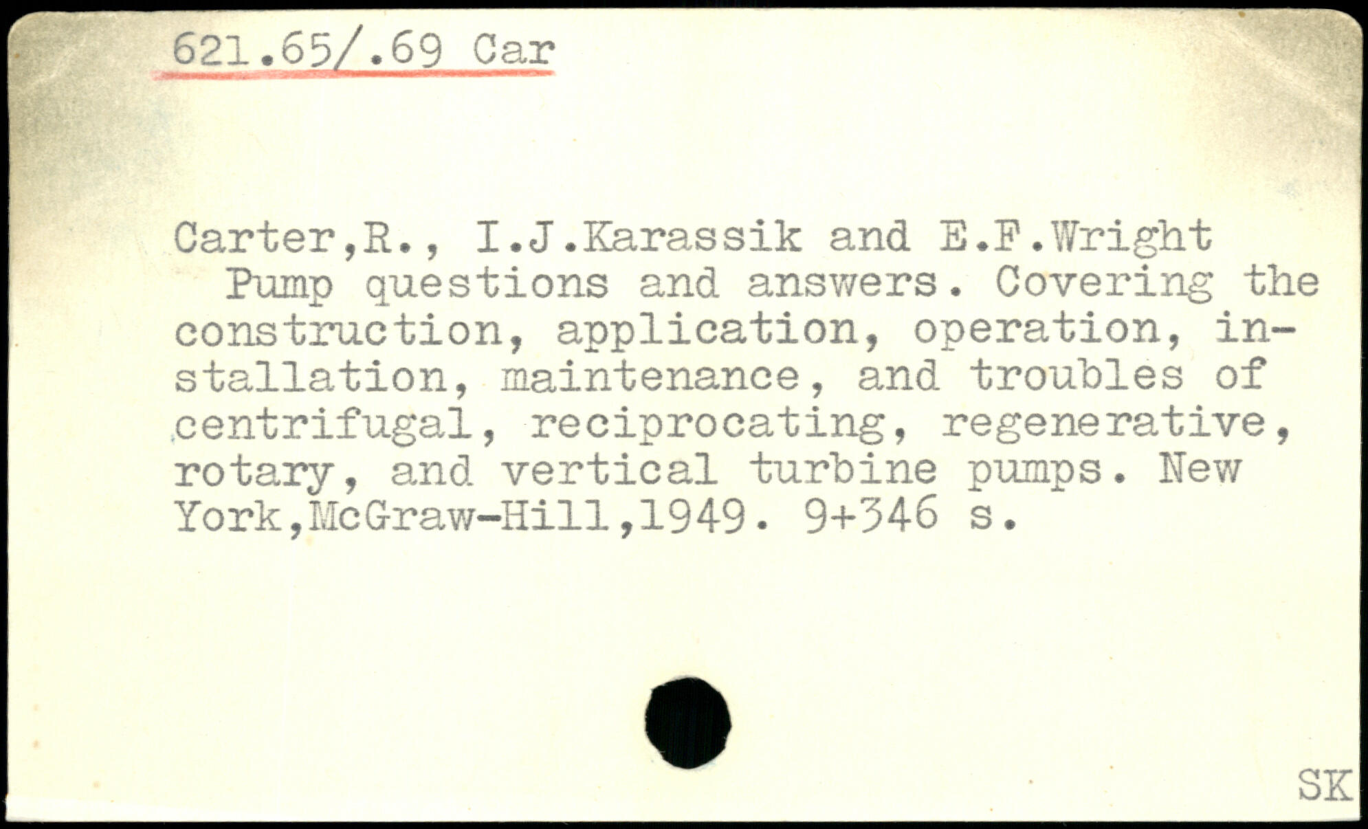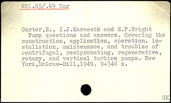 Carter,R., I.J.Karassik and E.F.Wright Pump questions and answers. Covering the construction, application, operation, installation, maintenance, and troubles of centrifugal, reciprocating, regenerative, rotary, and vertical turbine pumps.
