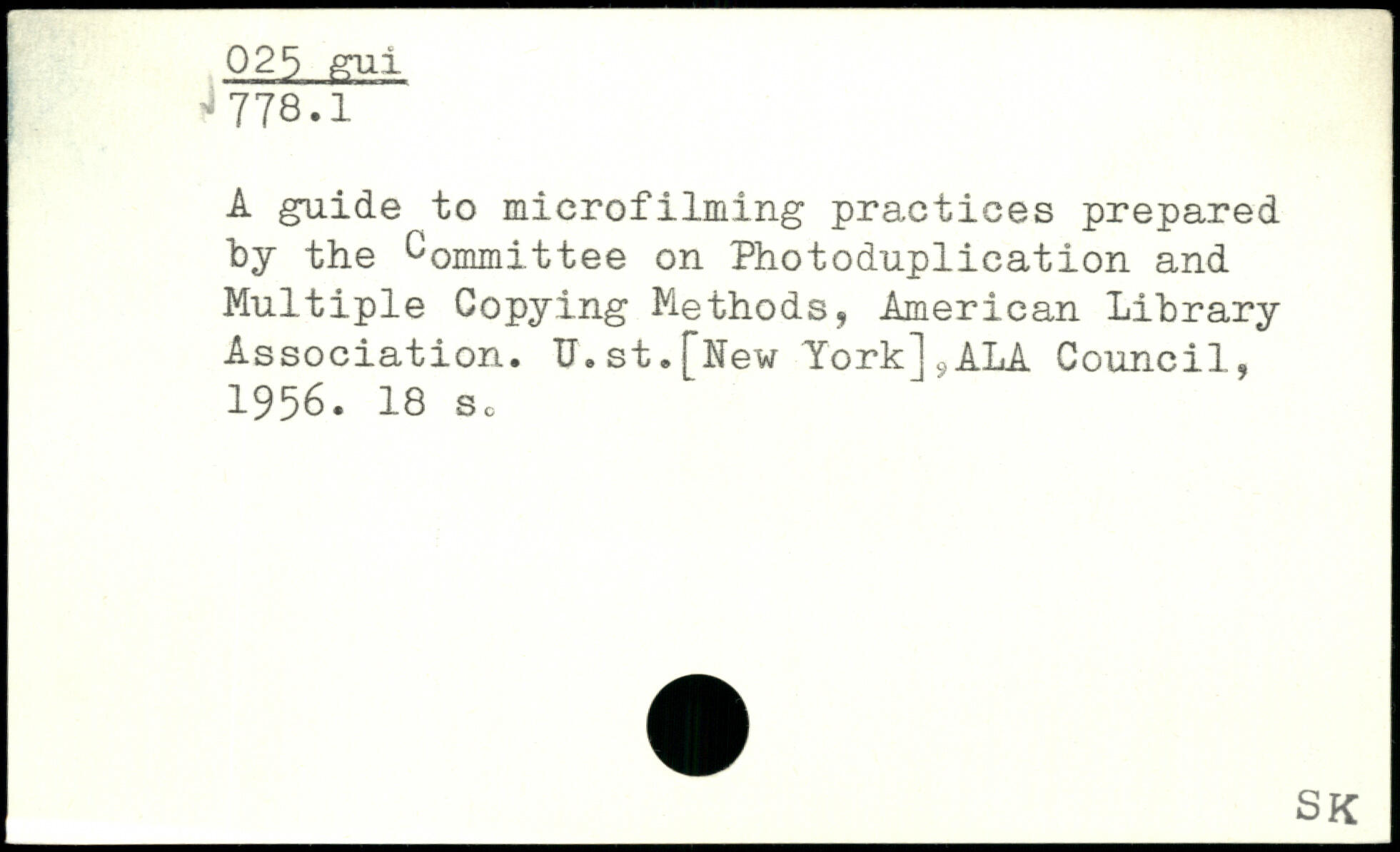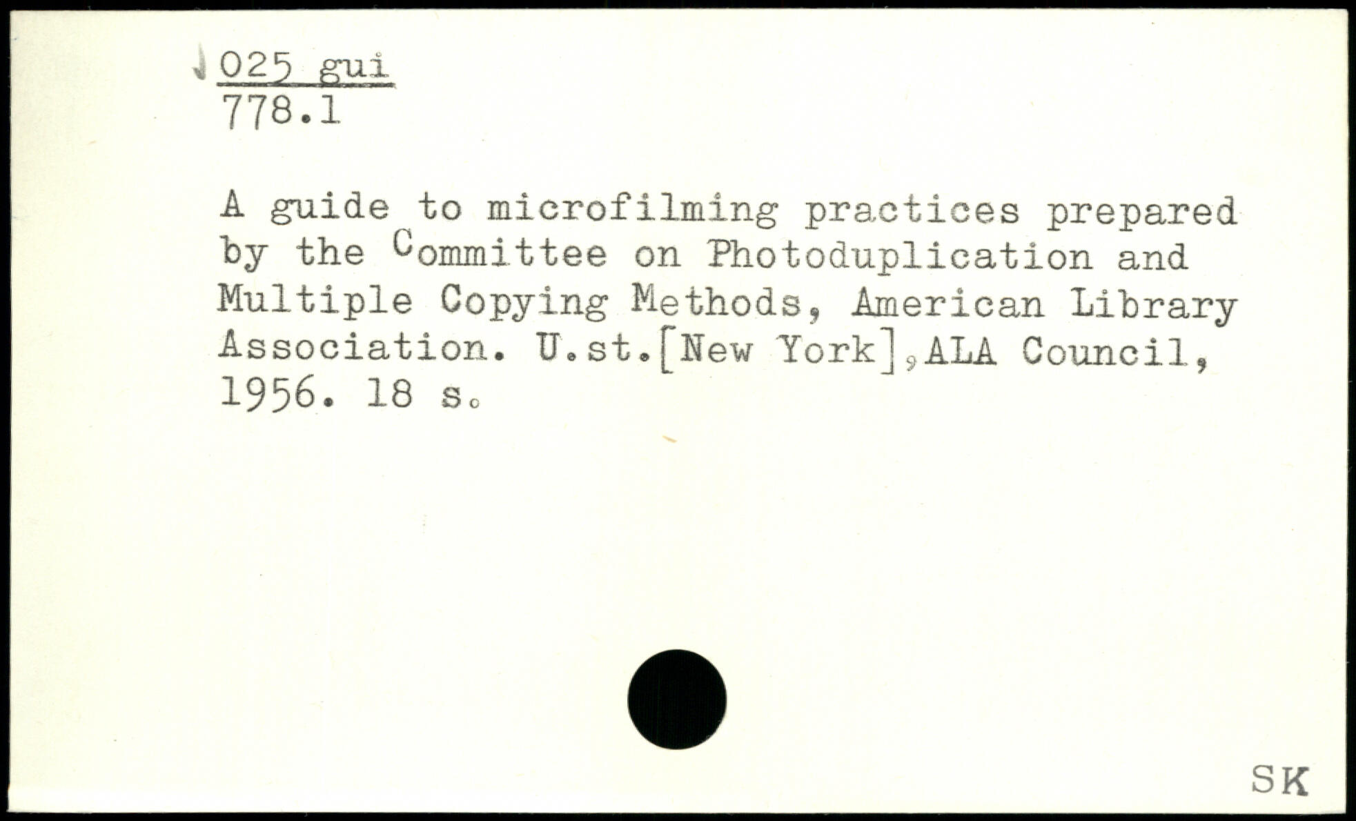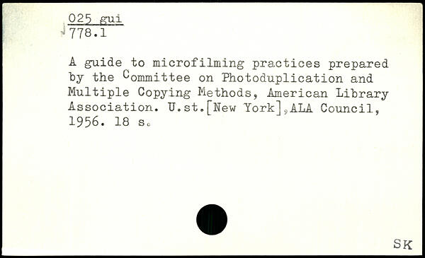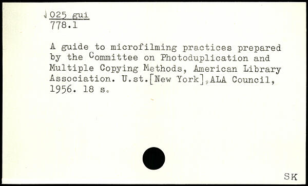 A guide to microfilming practices prepared by the Committee on Photoduplication and Multiple Copying Methods, American Library Association. U.st.[New York].,ALA Council, 1956.