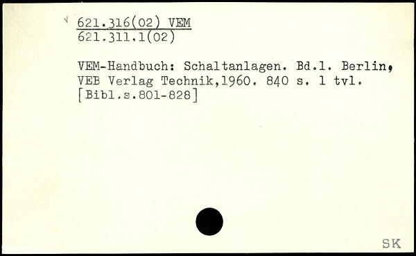 VEM-Handbuch: Schaltanlagen. Bd.l. Berlinf VEE Verlag Technik,1960.
