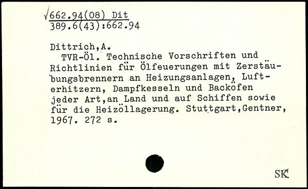 TVR-Öl. Technische Vorschriften und Richtlinien für Ölfeuerungen mit Zerstau-bungsbrennern an Heizungsanlagen^ Luft-| erhitzern, Dampfkesseln und Backofen jeder Art,an Land und auf Schiffen sowie für die Heizöllagerung.
