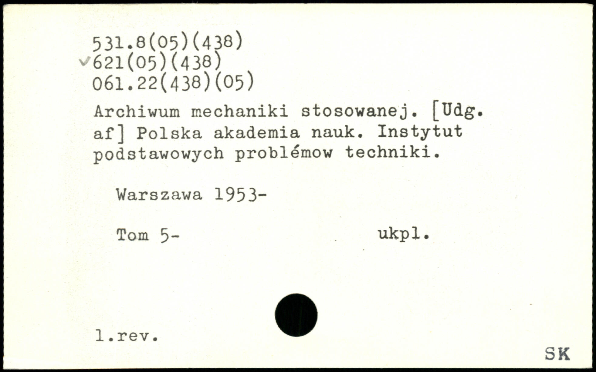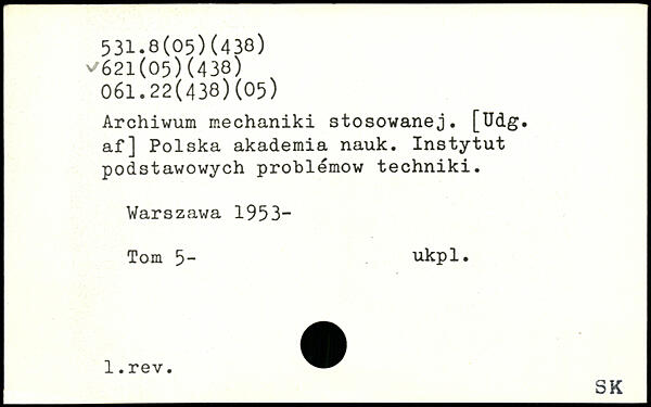 Archiwum mechaniki stosowanej. [Udg. af] Polska akademia nauk. Instytut podstawowych problémow techniki.