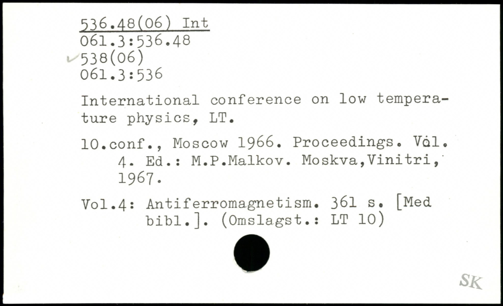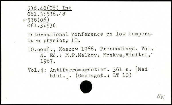 International conference on low temperature physics, LT. lO.conf., Moscow 1966. Proceedings. V61. 4. Ed.: M.P.Maikov.