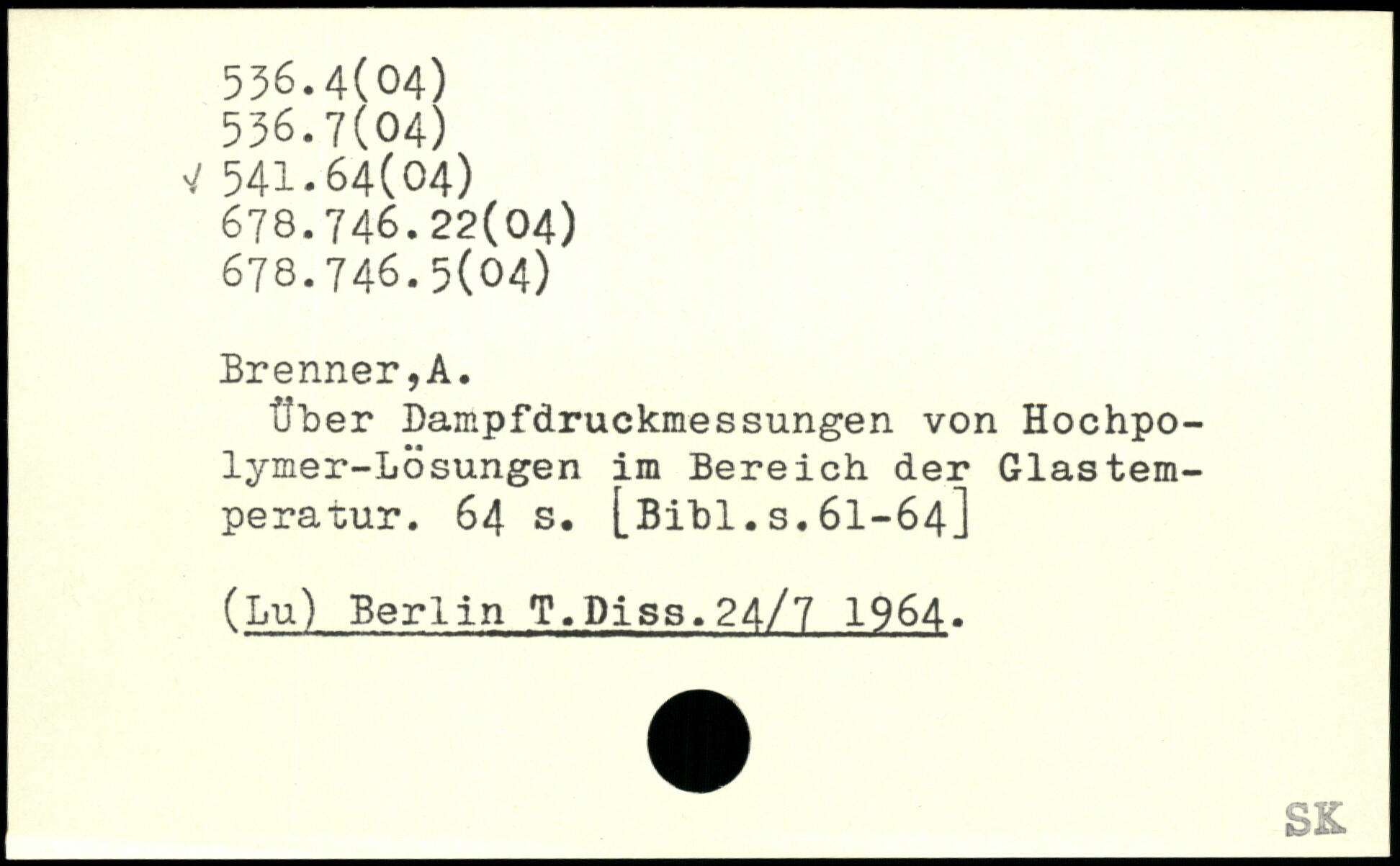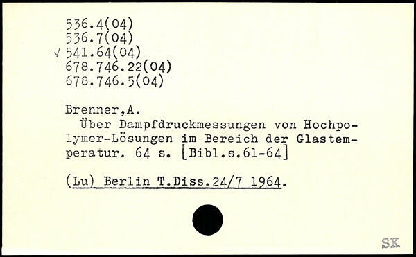 Über Dampfdruckmessungen von Hochpo-lymer-Lösungen im Bereich der Glastem-peratur.