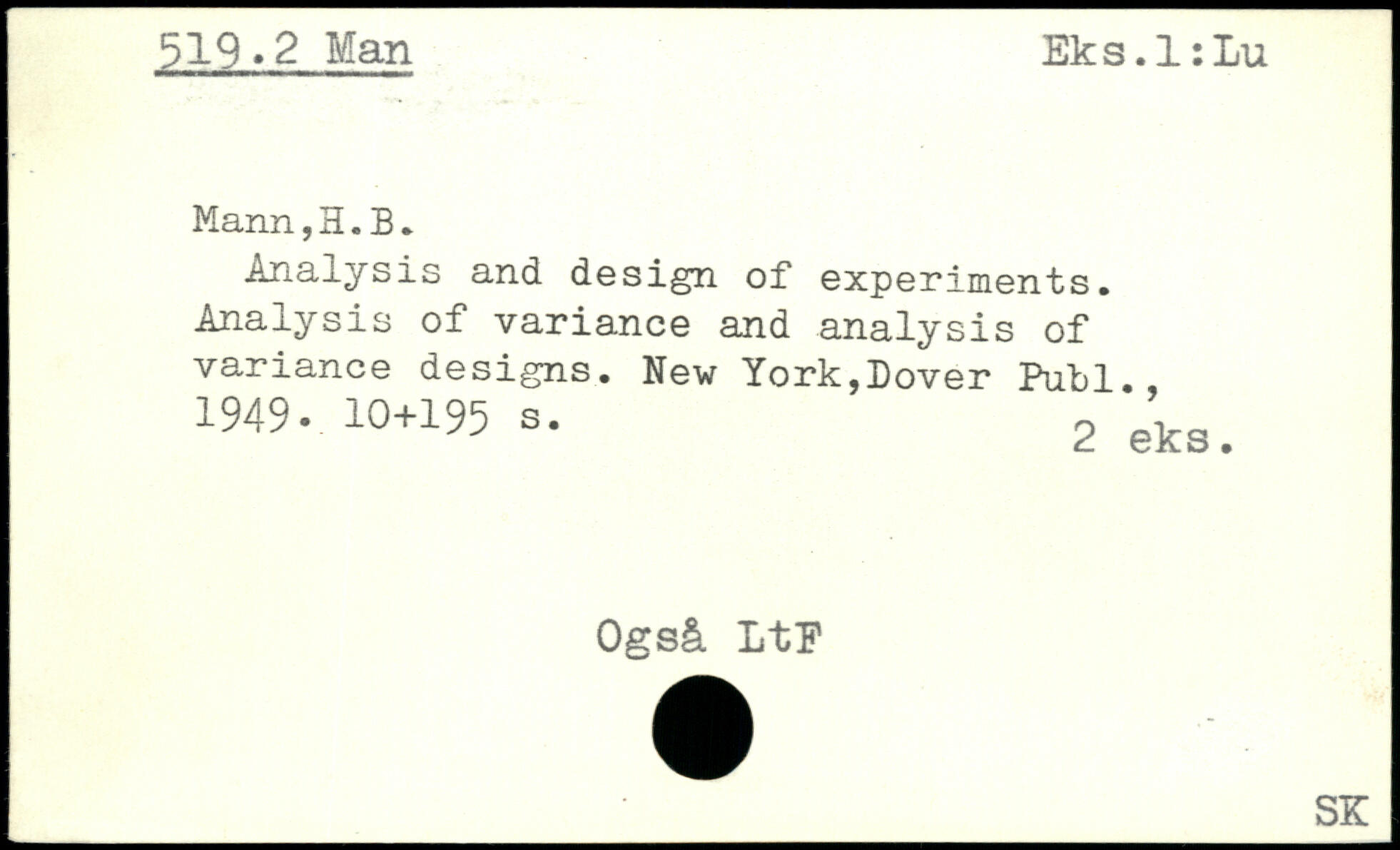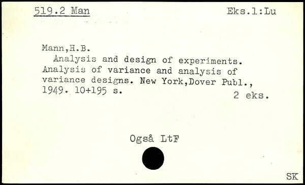 Analysis and design of experiments. Analysis of variance and analysis of ' variance designs.