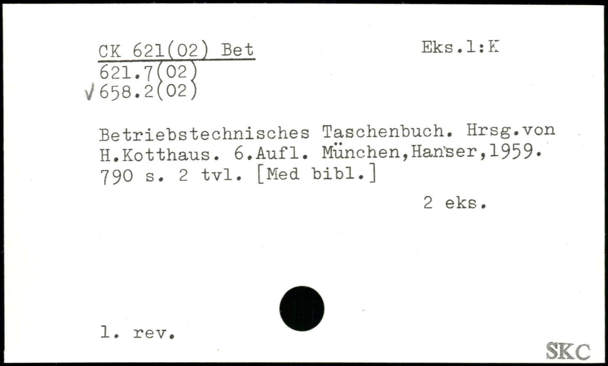 Betriebstechnisches Taschenbuch. Hrsg.von H.Kotthaus.