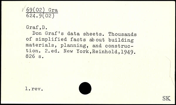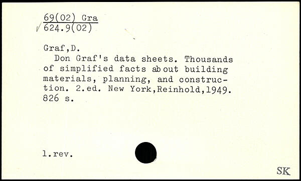 Don Graf's data sheets. Thousands of simplified facts about building materials, planning, and construction.