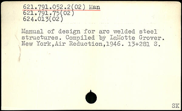 Manual of design for arc welded steel structures. Compiled by LaMotte Grover.