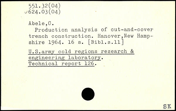 Production analysis of cut-and-cover trench construction. Hanover,New Hampshire 1964.