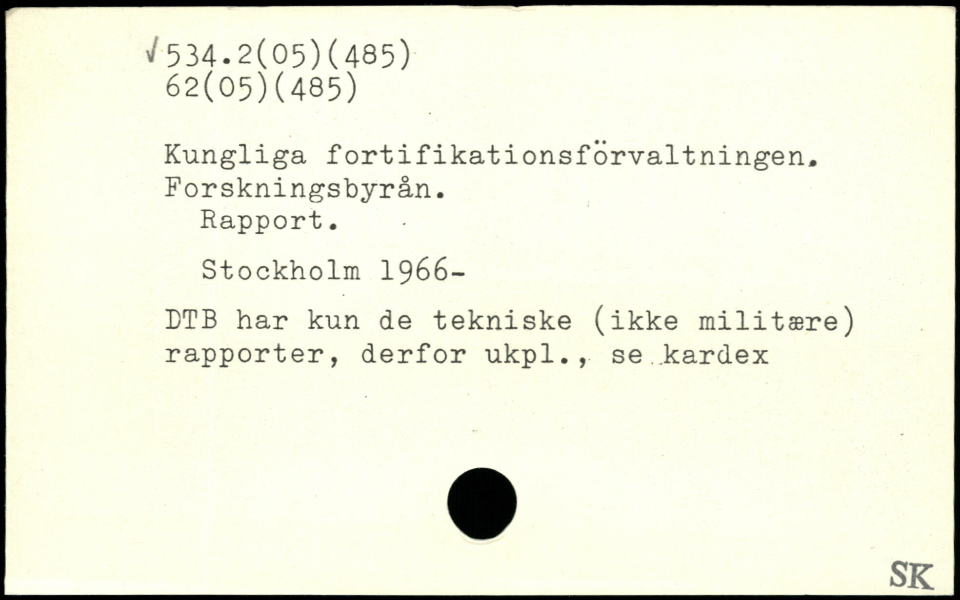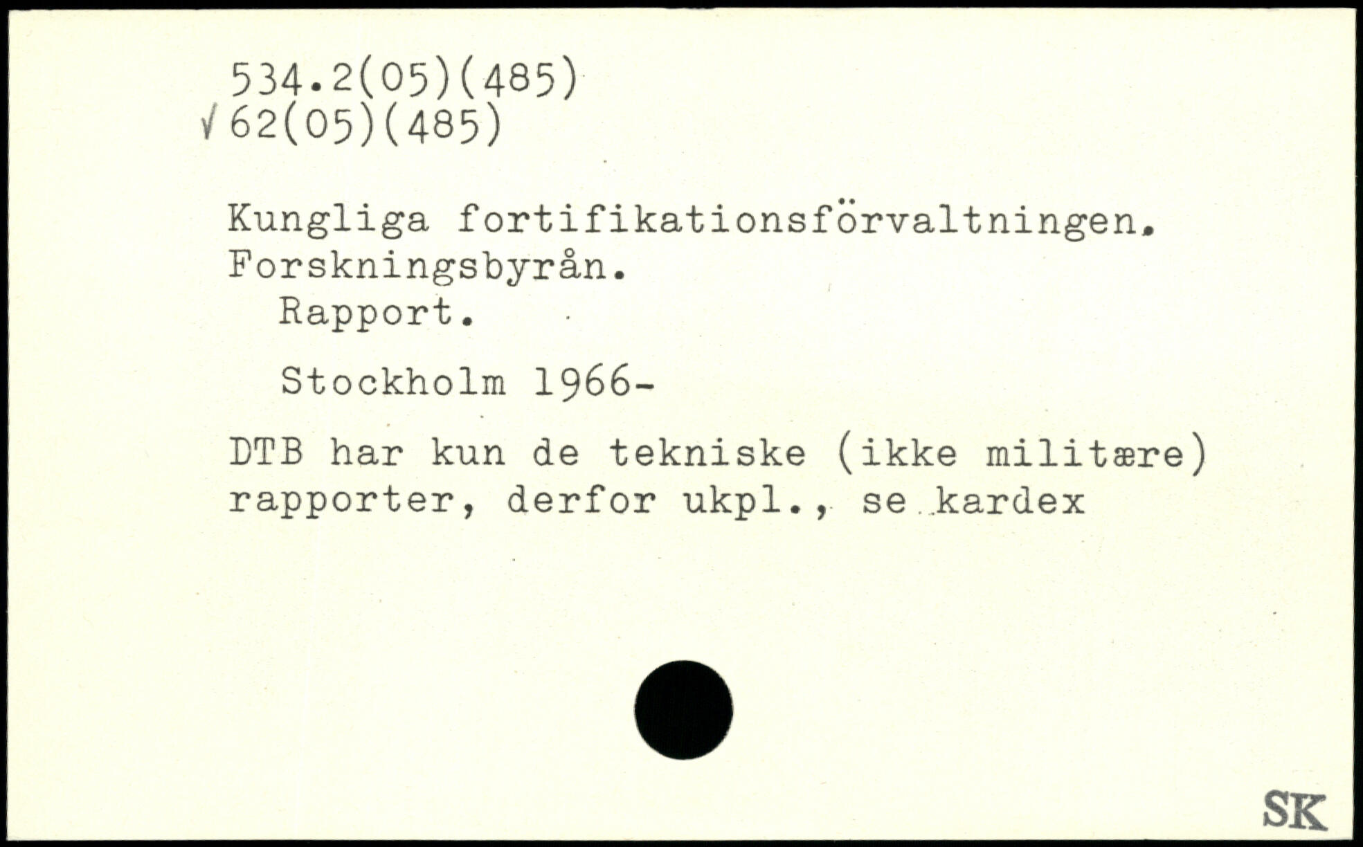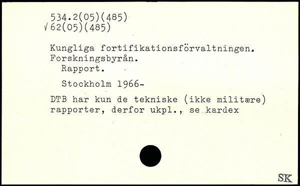 Kungliga fortifikationsforvaltningen. Forskningsbyrån. Rapport.
