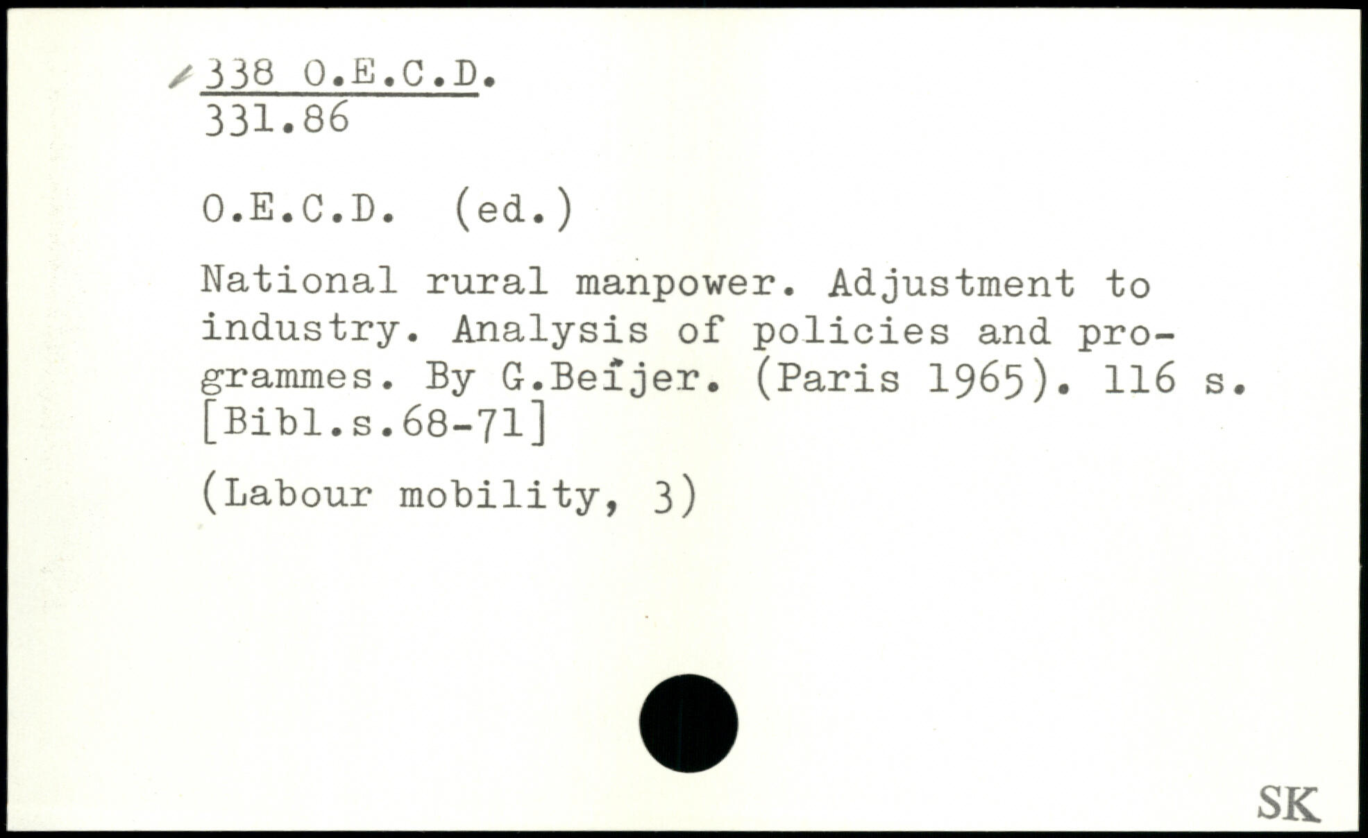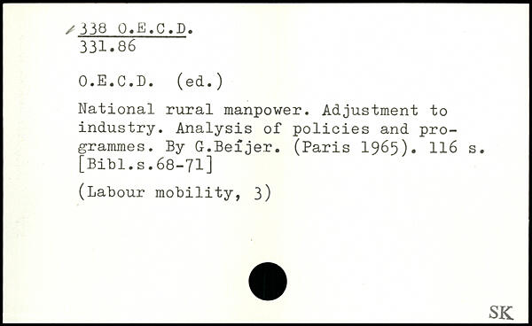 National rural manpower. Adjustment to industry. Analysis of policies and programmes. By G.Beîjer. (