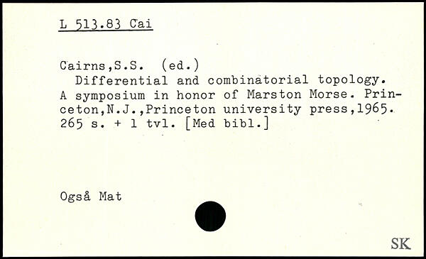 Differential and combinatorial topology. A symposium in honor of Marston Morse.