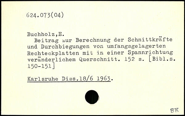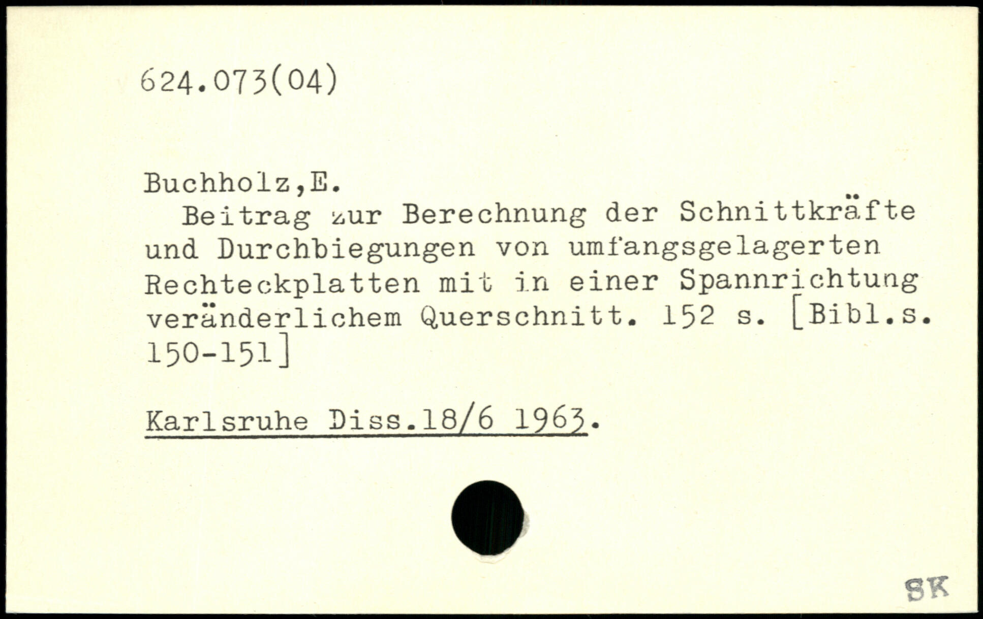 Beitrag zur Berechnung der Schnittkräfte und Durchbiegungen von umfangsgelagerten Rechteckplatten mit in einer Spannrichtung veränderlichem Querschnitt.