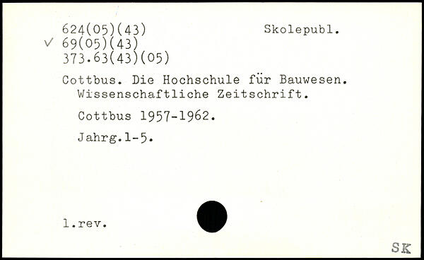 Cottbus. Die Hochschule für Bauwesen. Wissenschaftliche Zeitschrift. Cottbus 1957-1962. J ahrg.1-5.